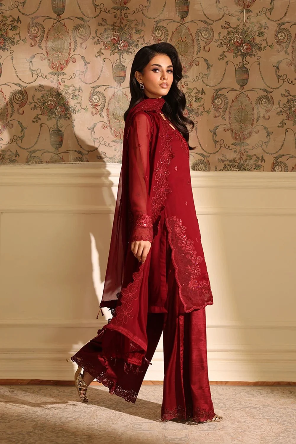 Embroidered Unstitched 3 Piece Suits - Garnet Majesty || Latest Pakistani Punjabi Suit Salwar Kameez Designer Wear.
