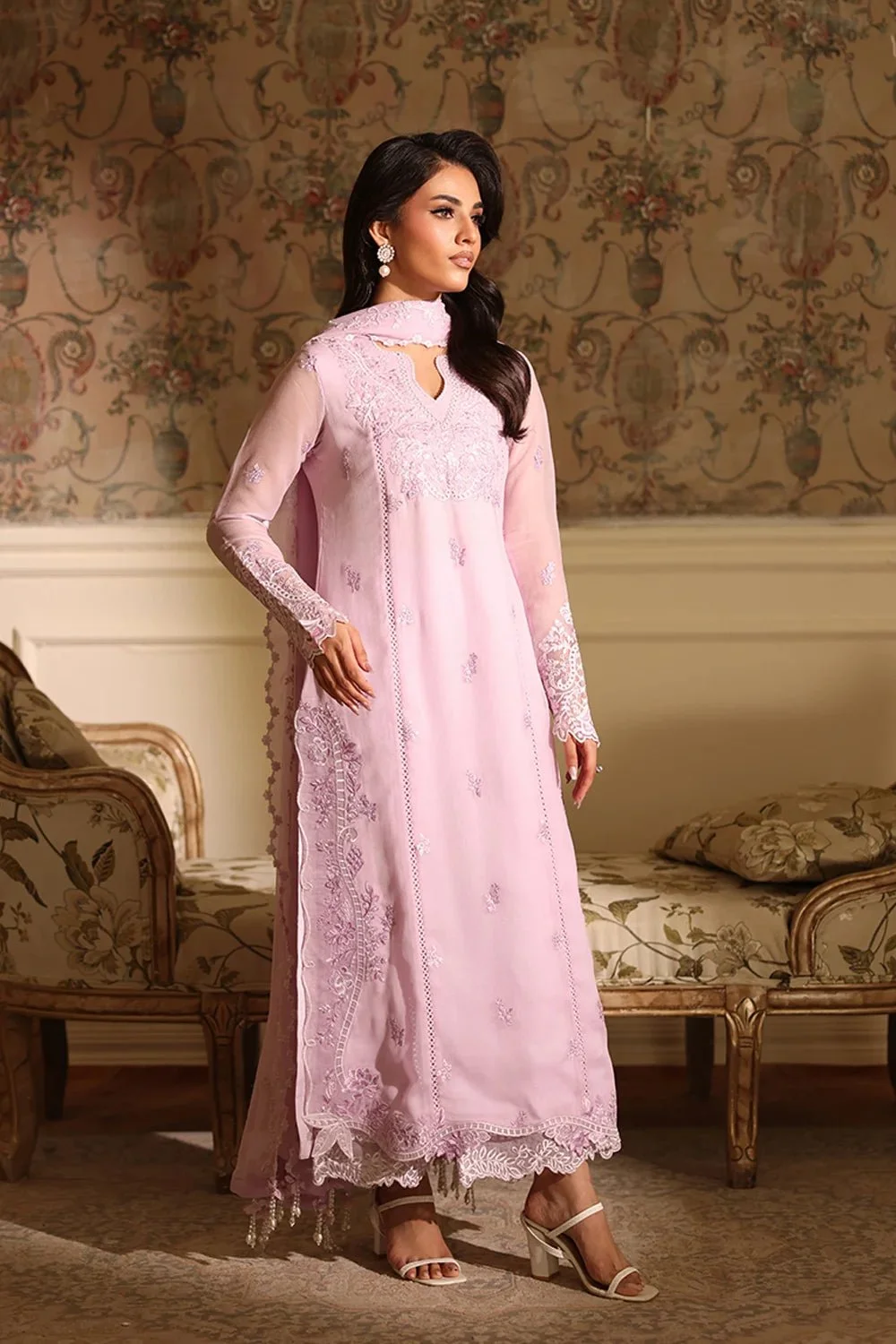 Pakistani Embroidered Chiffon Unstitched 3 Piece Suits - Orchid Whisper-Azu-56 || Latest Pakistani Punjabi Suit Salwar Kameez Designer Wear.