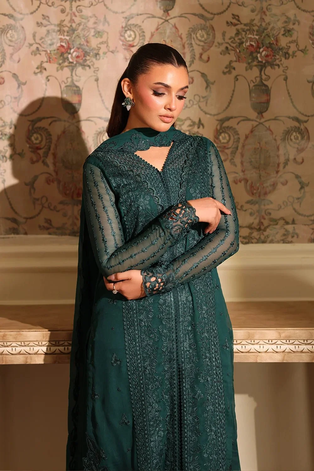 Pakistani Embroidered Velvet Suit 3 Piece Enchanted Emerald_Azu-5 - Formal Collection | Latest Pakistani Punjabi Suits Salwar Kameez Designer wear