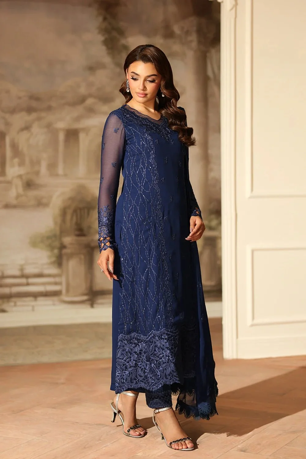Pakistani Embroidered Chiffon Unstitched 3 Piece Suits - Royal Eclipse-Azu-58 || Latest Pakistani Punjabi Suit Salwar Kameez Designer Wear.